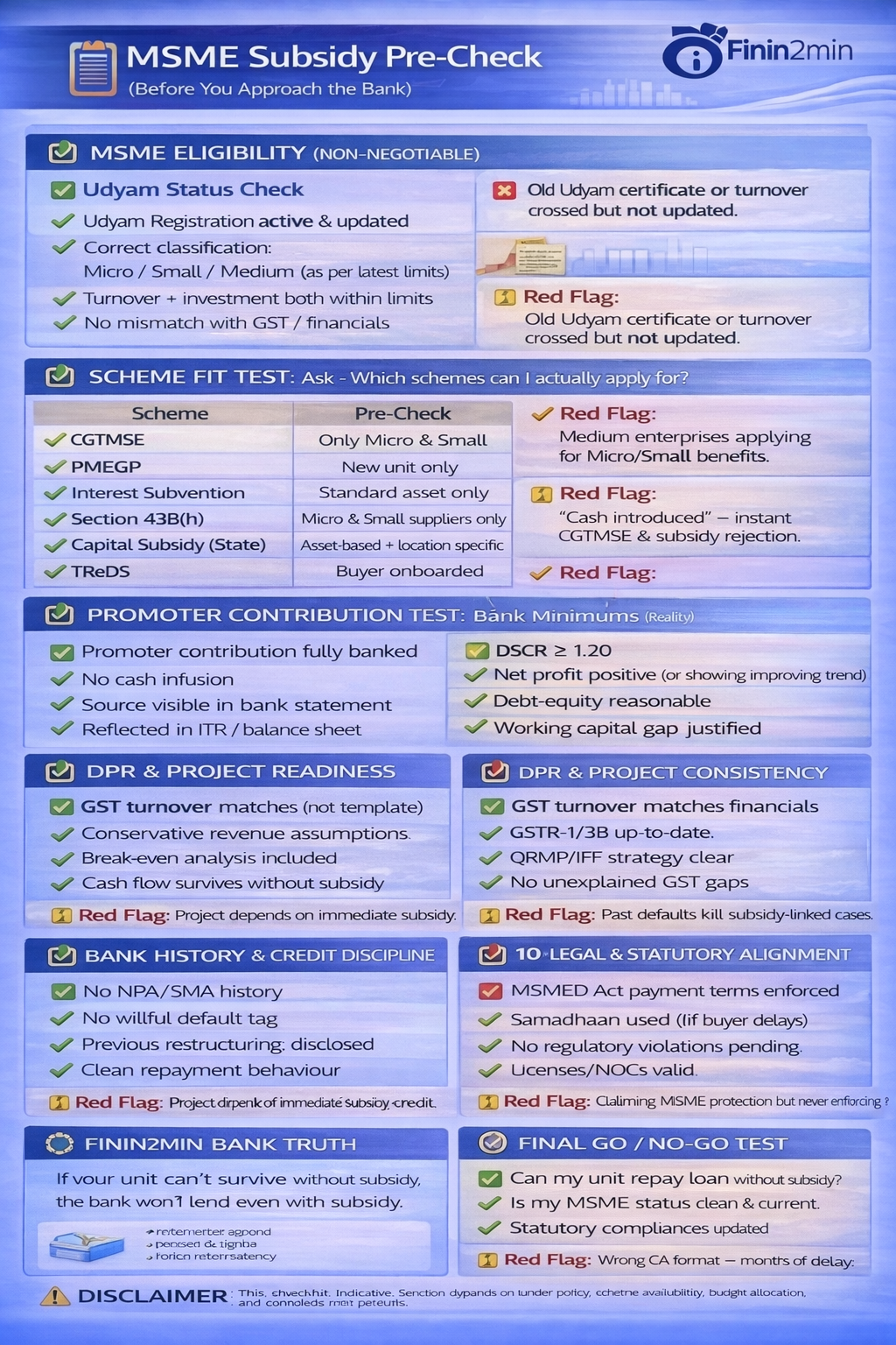 This checklist is indicative. Sanction depends on lender policy, scheme availability, budget allocation, and borrower risk profile.