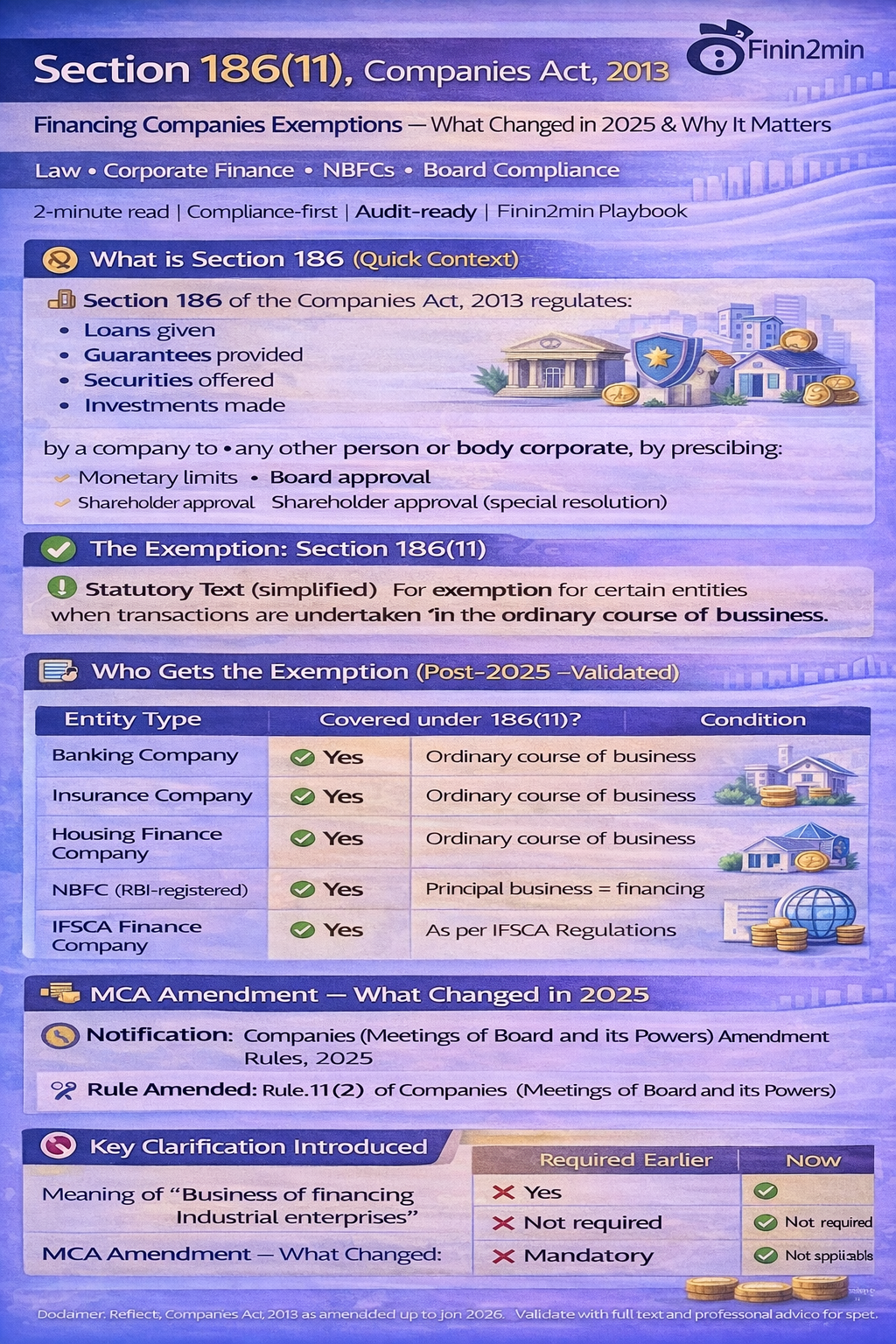 | NBFC routine lending | Section 186 risk | Fully exempt |