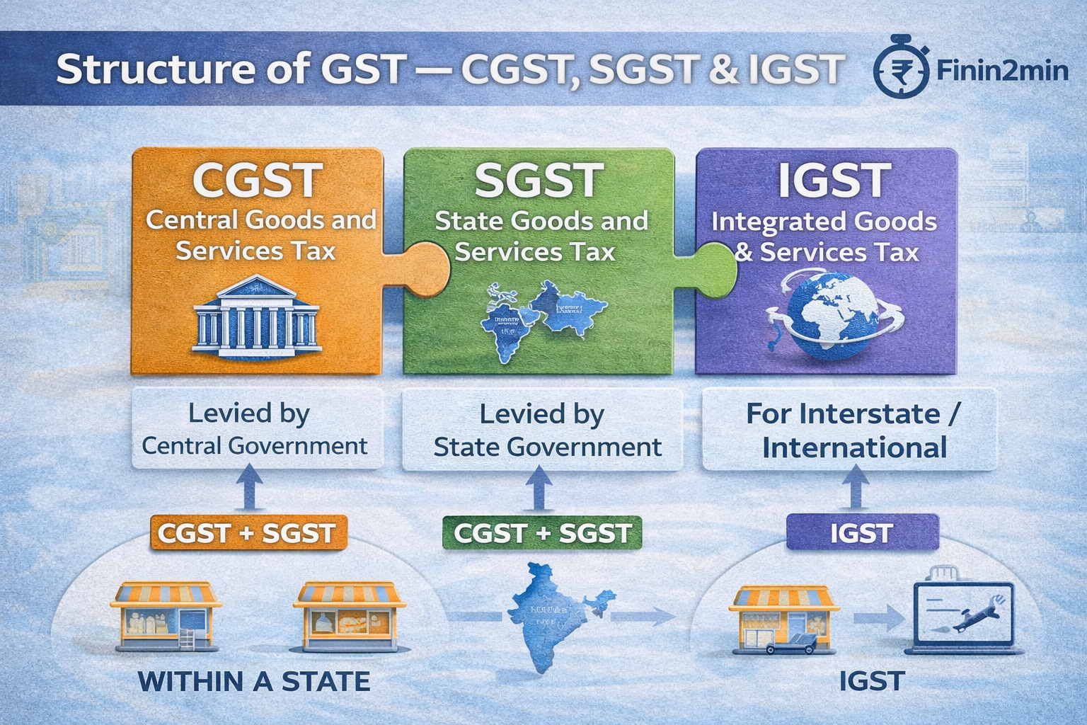 Understanding the Structure of GST: CGST, SGST and IGST| Finin2min